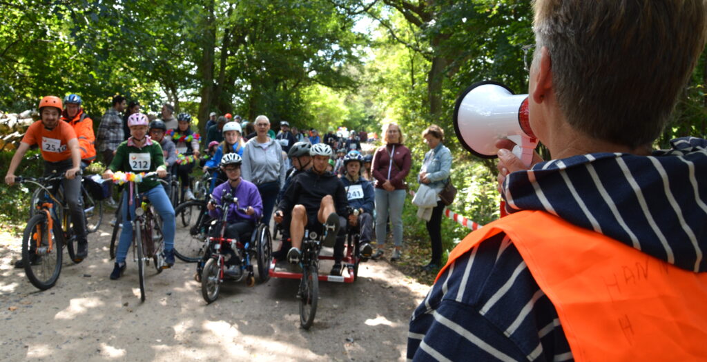 Um 13 Uhr begann der traditionelle Radelspaß. Die FahrradfahrerInnen starteten gemeinsam auf dem Heidkoppelhof und fuhren auf dem 2km langem Rundkurs eine oder mehrere Runden.