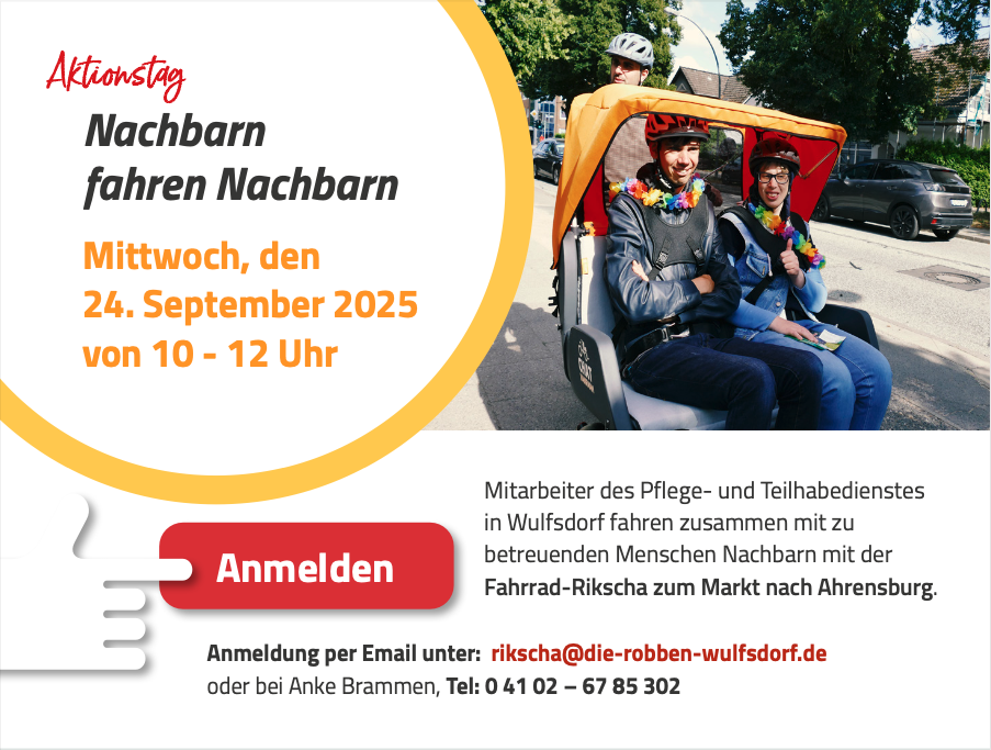 Wir laden ein und freuen uns über eine rege Teilnahme an unserem Aktionstag „Nachbarn fahren Nachbarn“.